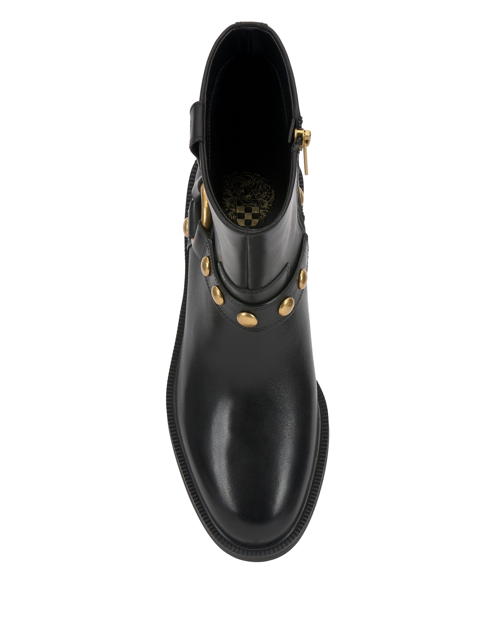 The Amais moto bootie is the perfect way to add modern edge to your wardrobe. The classic ankle boot silhouette is upgraded with a studded harness strap and a low block heel. The inside zipper closure adds convenience to your routine while the padded footbed supports every step.