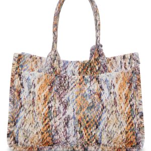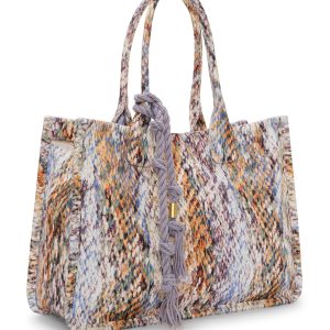 Oversize totes are trending. and the artisanal-vibe Orla is a cool way to wear the silhouette. Crafted of durable canvas. the bag is available in a variety of statement-making prints—from zebra stripe to tie-dye—and textures. It’s detailed with a twisted rope fob that adds color and motion. Rolled handles let you comfortably carry the tote in hand or on your shoulder.