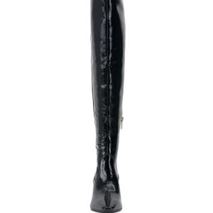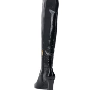 Over-the-knee boots are trending this season. and the Shalie is one of our favorite iterations of the silhouette. The sleek boot—now available in wide-calf sizing for perfect fit—is styled with a point toe and sits on a stacked-look angled heel that lends architectural vibes. Wear it with a shimmering minidress this season and next.