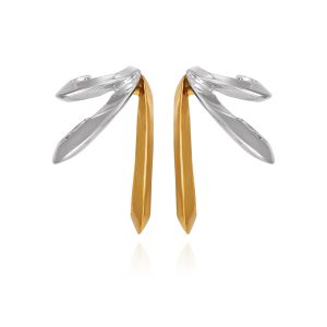 Two Tone Gilded Leaf Hoop Earrings