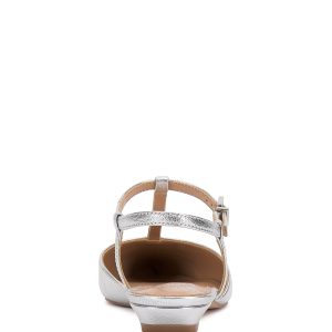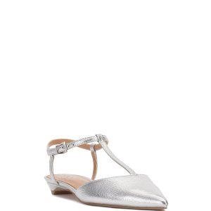 You can’t go wrong with the simplicity yet versatility of the Varena flat. A sleek t-strap leads the eye to the pointed toe and barely-there heel for effortless elegance you can dress up or down.