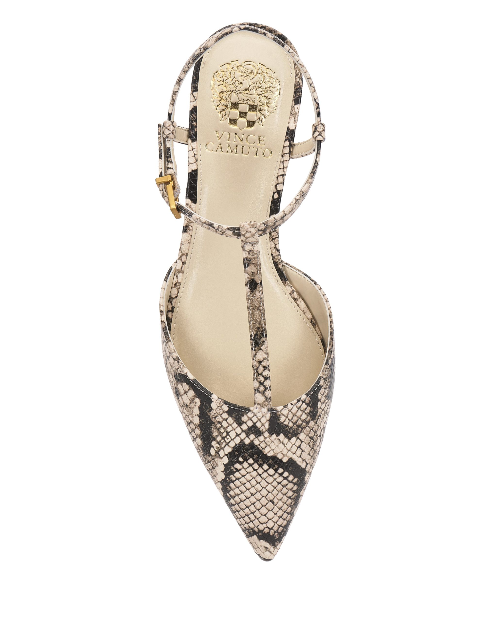 You can’t go wrong with the simplicity yet versatility of the Varena flat. A sleek t-strap leads the eye to the pointed toe and barely-there heel for effortless elegance you can dress up or down.